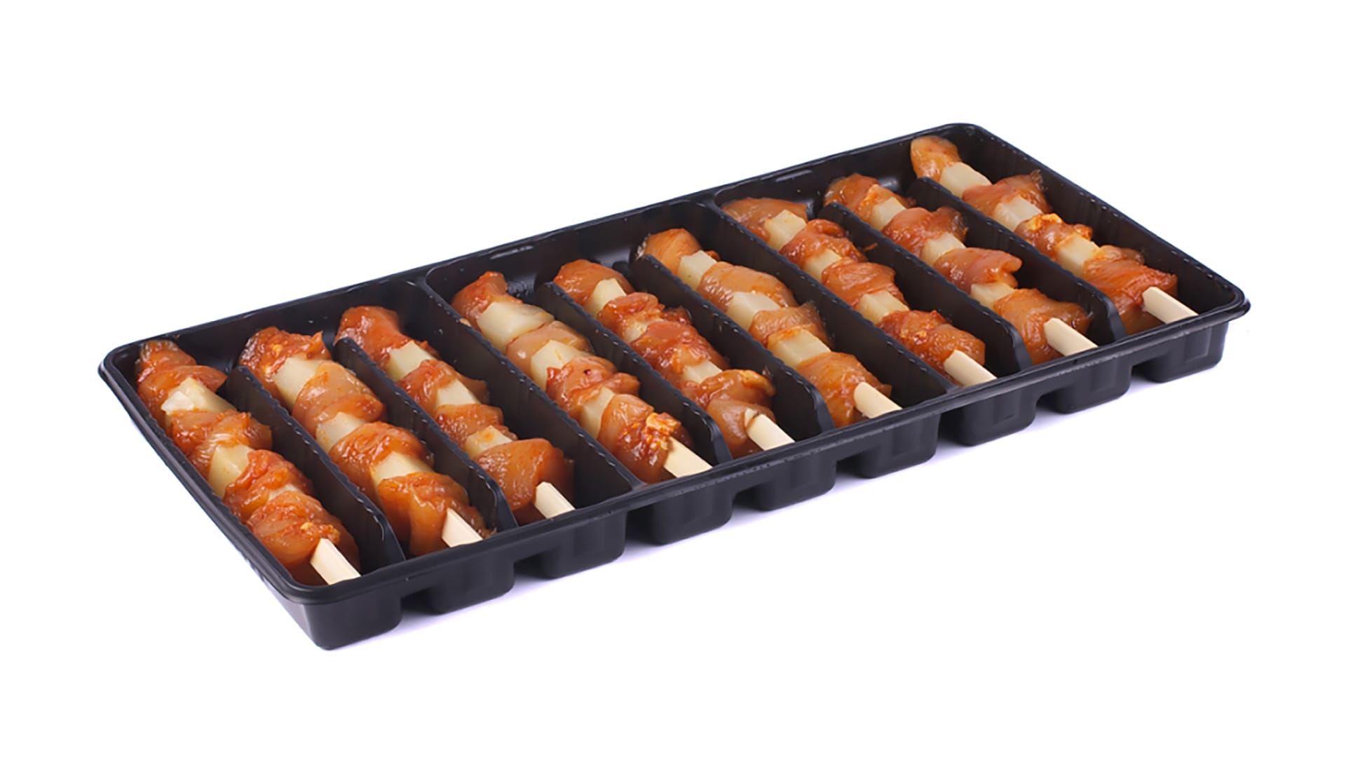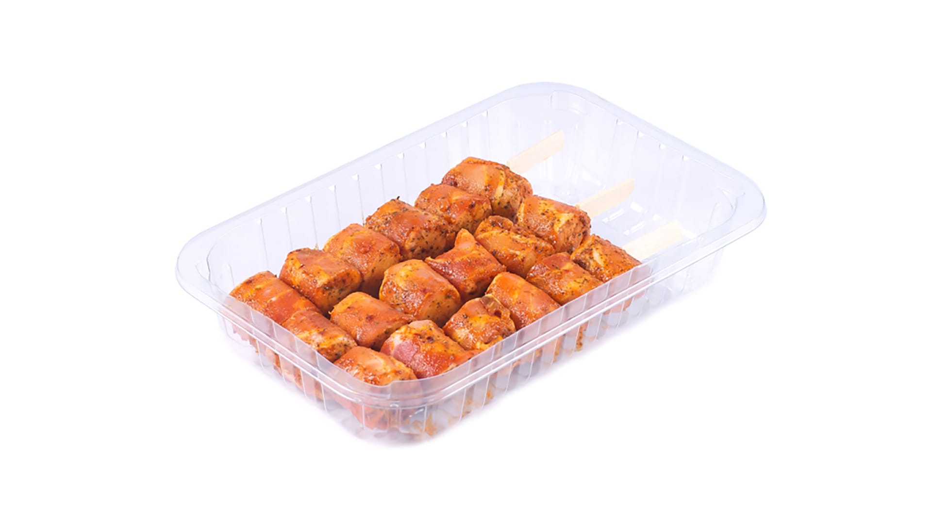 Onze spiesen worden met de hand samengesteld, naar wens gemarineerd en zijn niet getumbled. Zo blijft de vochtuittreding in de verpakking tot een minimum beperkt. Onze barbecuespiezen kunnen rauw of gegaard worden geleverd. Ook een ingevroren variant is mogelijk.
